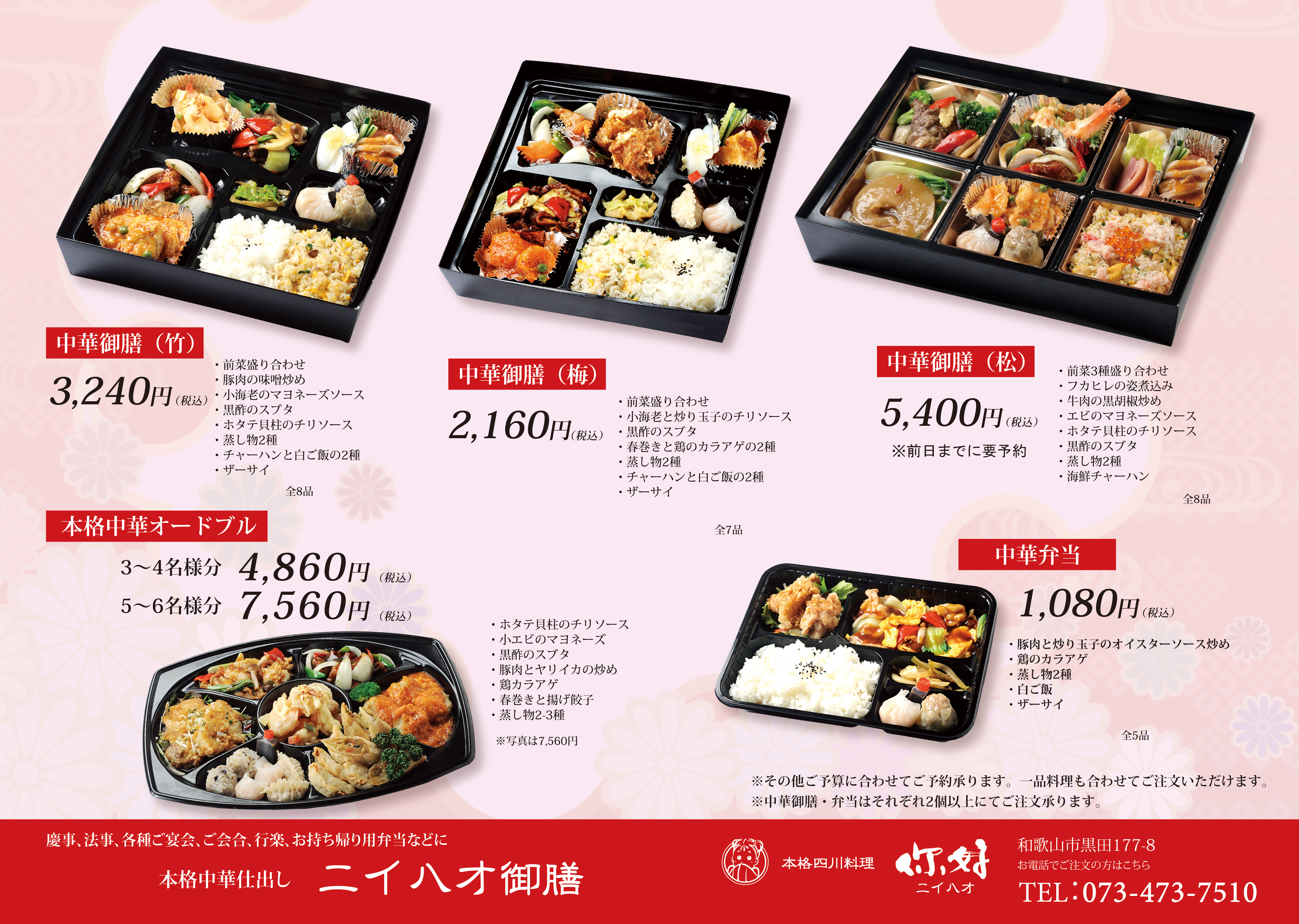 ⇒詳しくは『テイクアウト』ページをご覧ください